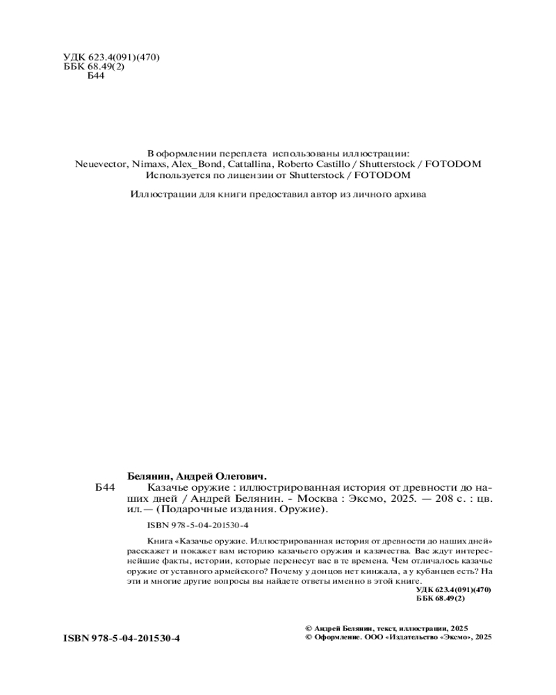 💳 Оплатить за товар можно при получении 🇰🇿 Есть бесплатная доставка по Казахстану от 1 дня 🎁 Копите бонусы с каждой покупки Серия: Подарочные издания. Оружие Уникальное издание о казачьем оружии, в котором рассказывается его богатая история. Вы найдете здесь подробную информацию о казачьей сабле, шашке, пике, кинжале и многом другом. Автор познакомит вас со всеми тонкостями оружия казаков. Вы перенесетесь во времена казачества и окунетесь в его удивительный мир. В книге много иллюстраций, воссоздающих атмосферу разных эпох и демонстрируюших детальную точность и разнообразие вооружения. Автор книги Андрей Белянин — есаул, писатель, всю жизнь изучает и хранит традиции русского казачества, |