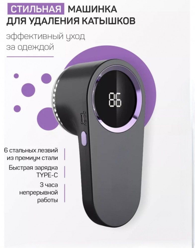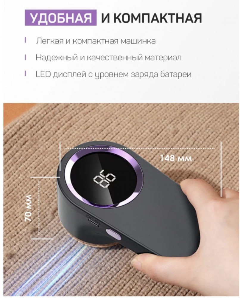 Машинка для удаления катышковВ данный момент этот товар отсутствует в продаже. Возможно, у нас найдется аналогичный или похожий товар здесь. Бережно и эффективно ухаживайте за своей одеждой, удаляя катышки и придавая вещам свежий вид. Устройство оснащено 6 острыми стальными лезвиями, которые быстро и безопасно срезают катышки, не повреждая ткань. Быстрая зарядка Type-C позволяет удобно заряжать прибор от любого устройства с соответствующим разъемом, а до 3 часов автономной работы обеспечивают длительное использование без частой подзарядки. Цифровой дисплей отображает уровень заряда и рабочие параметры, а эргономичный дизайн гарантирует комфорт в процессе использования. Подходит для различных типов тканей — эффективно удаляет катышки с шерсти, хлопка, синтетики и трикотажа. |