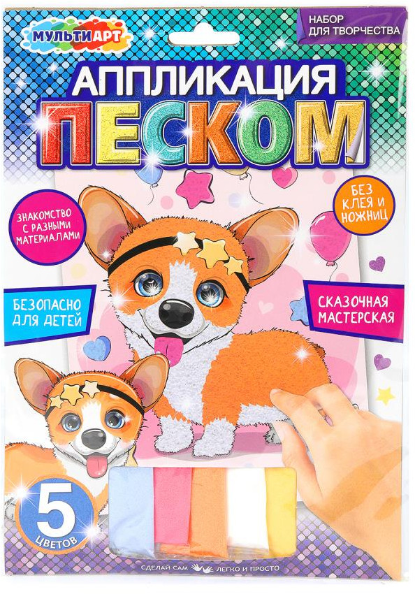 💳 Оплатить за товар можно при получении 🇰🇿 Есть бесплатная доставка по Казахстану от 1 дня 🎁 Копите бонусы с каждой покупки Серия: Сказочная мастерская Набор для творчества — аппликация из песка «Корги» из серии «Сказочная мастерская» ТМ «Мульти Арт» — отличный подарок для ребёнка, который будет способствовать развитию его творческих способностей. С помощью красочной основы и разноцветного песка маленький художник сможет самостоятельно создать яркую аппликацию с изображением очаровательной собачки породы корги. Готовую поделку можно подарить близким или использовать для украшения интерьера. |