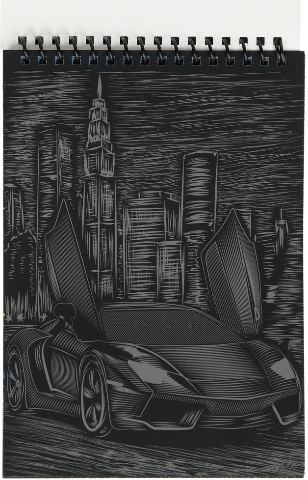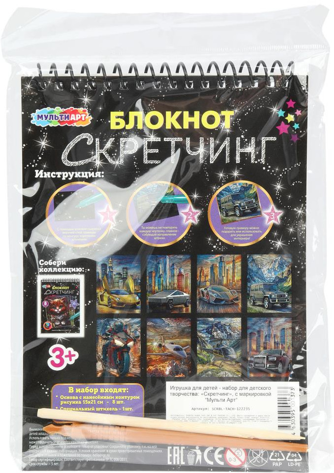 Набор для творчества «Блокнот скретчинг. Крутые тачки» ТМ «Мульти Арт» — отличный подарок для ребёнка, который будет способствовать развитию его творческих способностей: