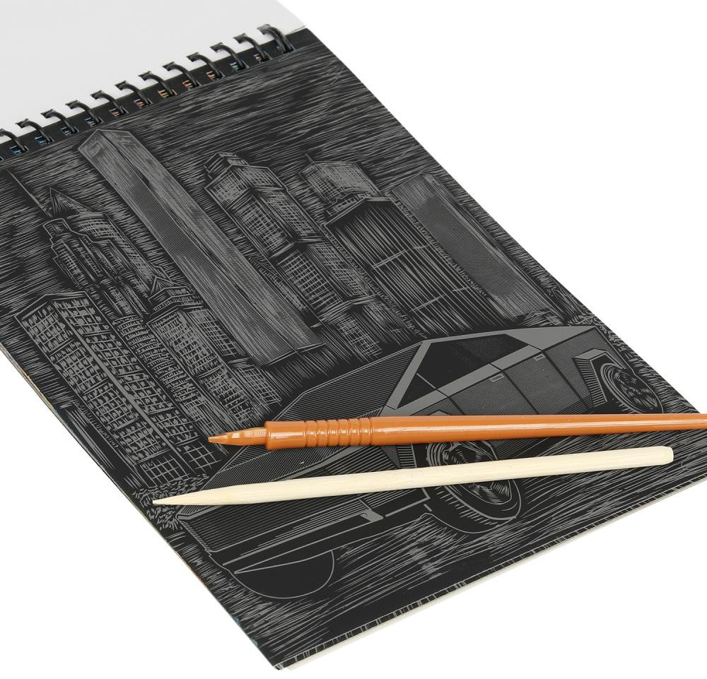 С помощью данного набора юный художник сможет создать 8 эффектных картин на чёрном фоне. Скретчинг гравюра представляет собой цветную картину на чёрном фоне. Чтобы картина приобрела цвет, необходимо по контуру рисунка, который уже нанесён на основу, процарапать изображение специальным штихелем. Можно не повторять каждую черточку, главное — соблюдать направление штриха! Готовая поделка станет отличным вариантом для подарка близким или для украшения интерьера комнаты.