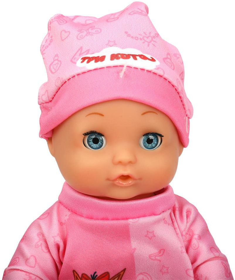 Развивающая интерактивная кукла «Три кота. Малышка» ТМ «Карапуз» станет прекрасным подарком для вашей принцессы. Этот милый пупс, с детально проработанным личиком, обязательно понравится вашей малышке. Куколка одета в розовый костюмчик с тематическим принтом и милую шапочку. Одежда легко надевается и снимается. С такой куклой девочка может играть в самые разные игры, гулять с ней, петь песни, кормить, переодевать, рассказывать сказки и укладывать спать. Игра с интерактивным пупсом ТМ «Карапуз» учит ребёнка заботиться об окружающих, быть ответственным и внимательным.