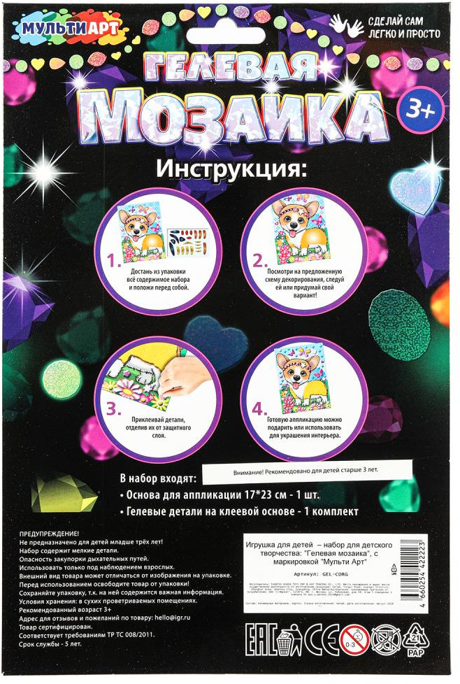 Набор для творчества — гелевая мозаика «Корги» ТМ «Мульти Арт» — отличный подарок для вашего ребёнка, который будет способствовать развитию его творческих способностей.