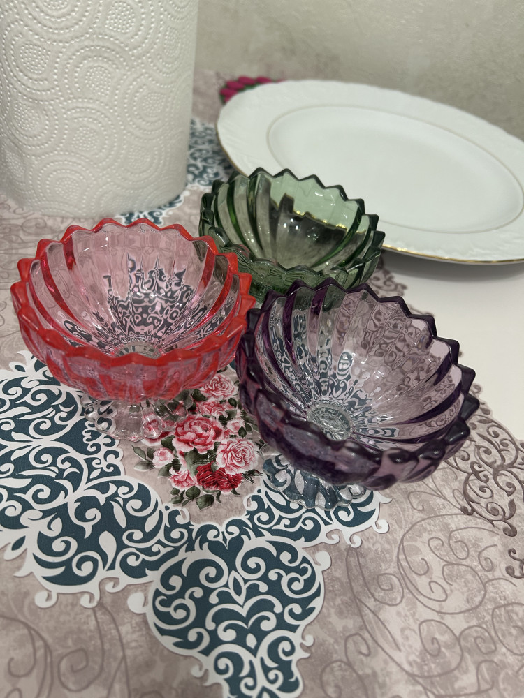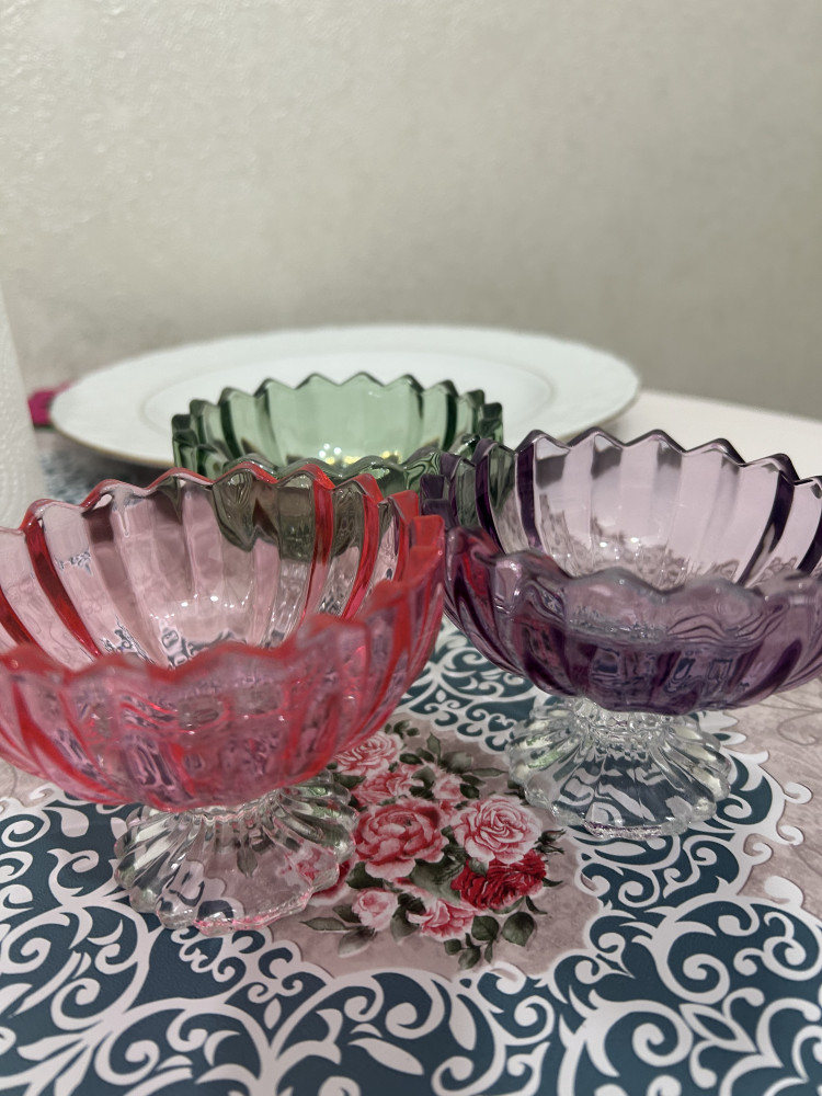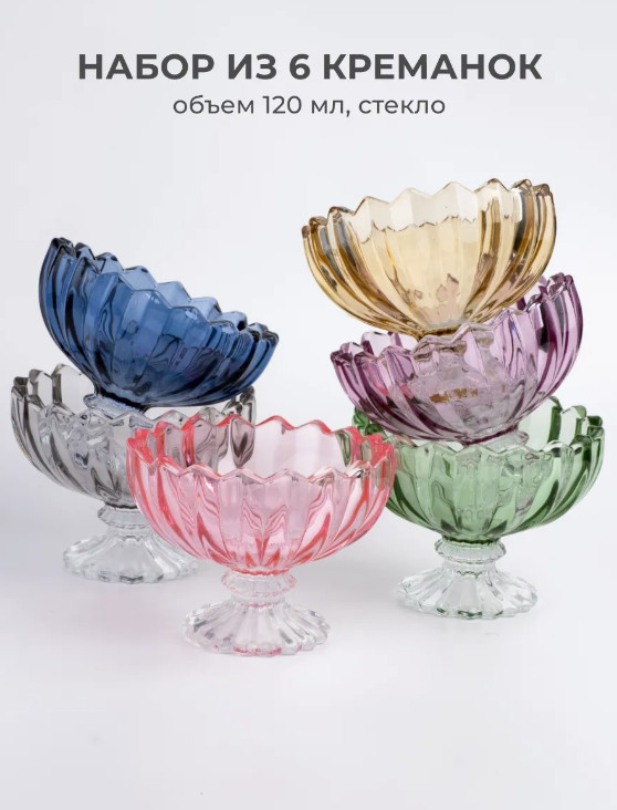 Очень красивые креманки, сначала заказала один набор, когда увидела их красотуууу заказала повторно еще один, объем маленький то что надо
