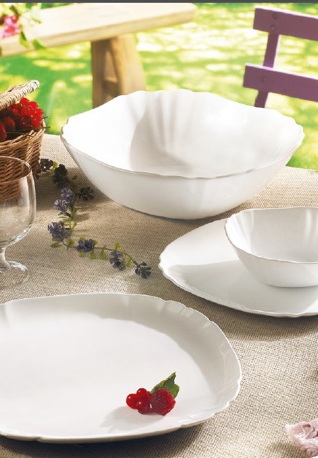 - Вся столовая посуда Luminarc проходит процесс упрочнения и в 2-3 раза устойчивее к повреждениям, чем другие изделия такой же толщины, к тому же при очень сильном ударе посуда распадается на множество неострых кусочков, что практически исключает возможность пореза.