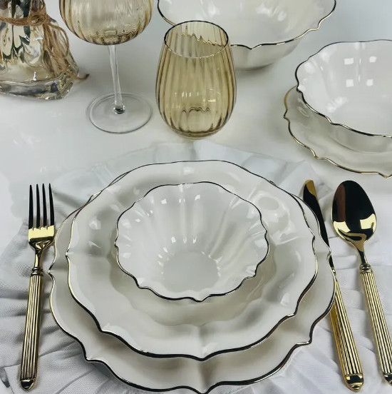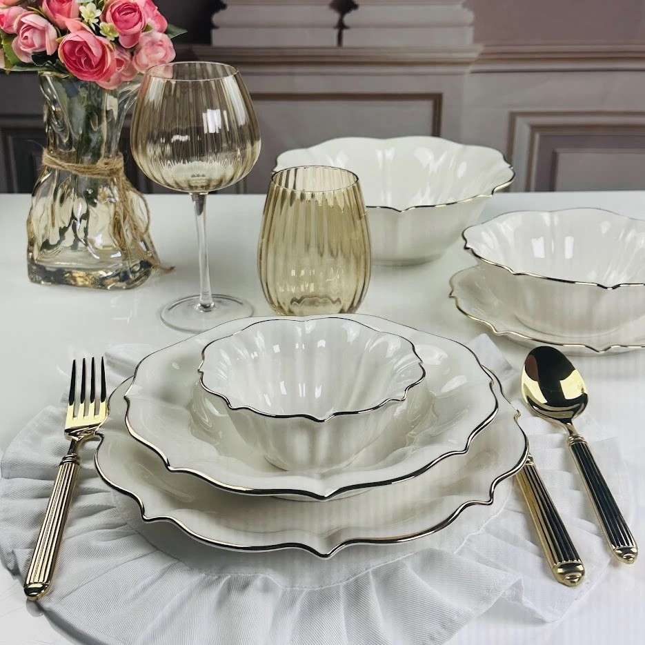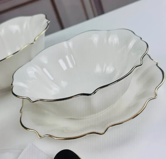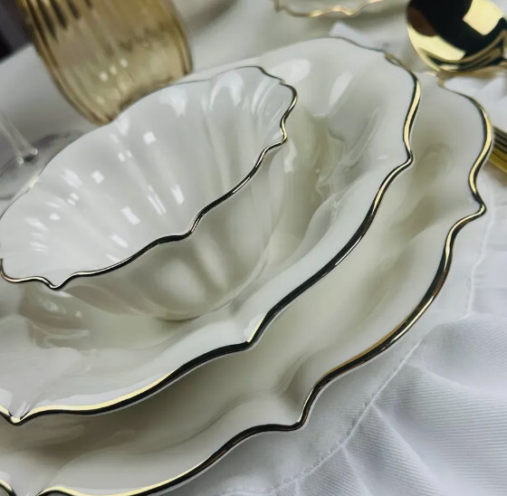 Новая коллекция посуды из фарфора Камелия изготовлена из высококачественного фарфора. Посуда белого цвета, идеальна для любого интерьера и стиля. Оригинальная форма и золотая обводка добавляют роскоши и изысканности. Набор состоит из 26 предметов. Изделия легко и просто мыть. Сервиз для чая прекрасно подойдет в качестве подарка для родных и друзей на любой праздник!