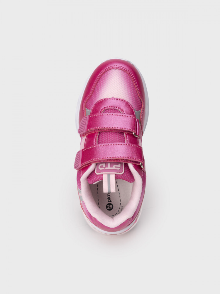 Кроссовки детские для девочки с оригинальной подошвой созданы с использованием ИИ (искусственного интеллекта). Кроссовки выполнены из градиентного дышащего текстиля и перламутровой искусственной кожи, обладающей высокими эксплуатационными свойствами. Модель имеет светоотражающие элементы. В обуви стоит текстильная подкладка c высоким содержанием хлопка 80%, которая обладает высокой гигроскопичностью. Две застежки липучки создают удобство при обувании. Профилированная съемная стелька из свиной кожи с анатомической формой подсводника обеспечивает правильную нагрузку на стопу. Формоустойчивый задник поддерживает стопу в правильном положении. Эргономичная форма колодки обеспечивает правильное формирование стопы ребенка. Подошва из ЭВА легкая, гибкая и имеет хорошие амортизационные свойства. Подошва с мигающим элементом flashlight.