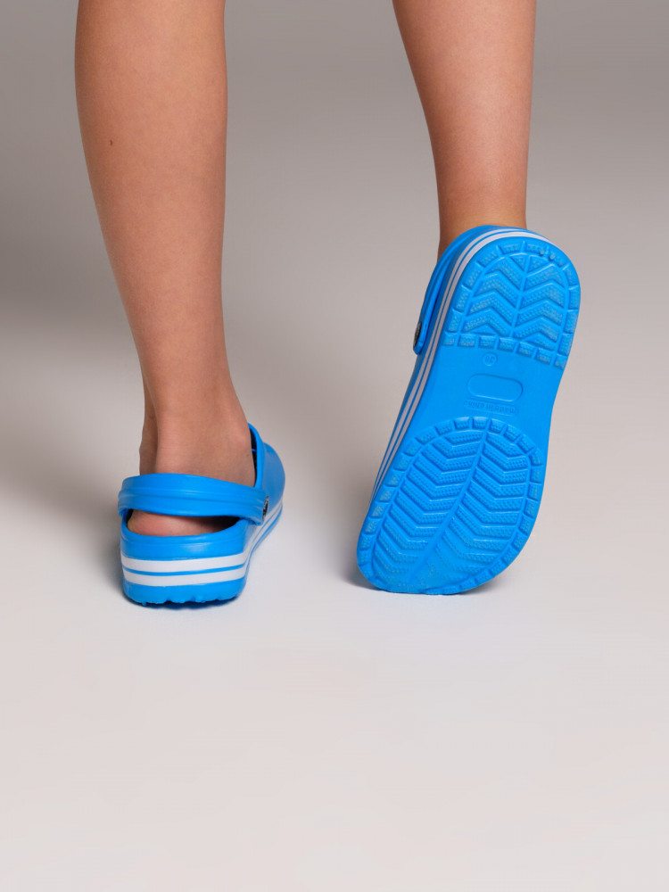 Сабо из облегченного и прочного ЭВА. Материал хорошо моется. Форма модели учитывает эргономику стопы. Модель имеет перекидной ремешок фиксации ноги. Модель маломерит. Рекомендуем покупать на размер больше.