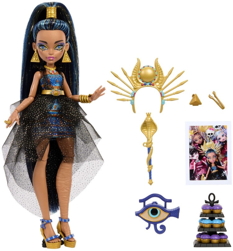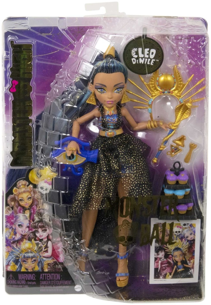 В данный момент этот товар отсутствует в продаже. Возможно, у нас найдется аналогичный или похожий товар здесь. Кукла Monster High Клео Де Нил в праздничном платье Monster Ball с тематическими аксессуарами. Кукла Клео Де Нил прибыла на бал монстров в королевском стиле! Она раскачивает тусовщицу, которая обязательно произведет впечатление на жутком танцполе Школы Монстров. Страшно крутой наряд этой мумии излучает царственную драму! Ее мини-платье с ярким принтом выглядывает из присборенных складок мерцающей накладки из черной ткани.
