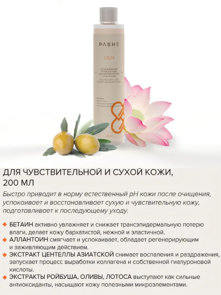 Pashe Тоник для сухой и чувствительной кожи лица успокаивающий «CalmingTonic»
