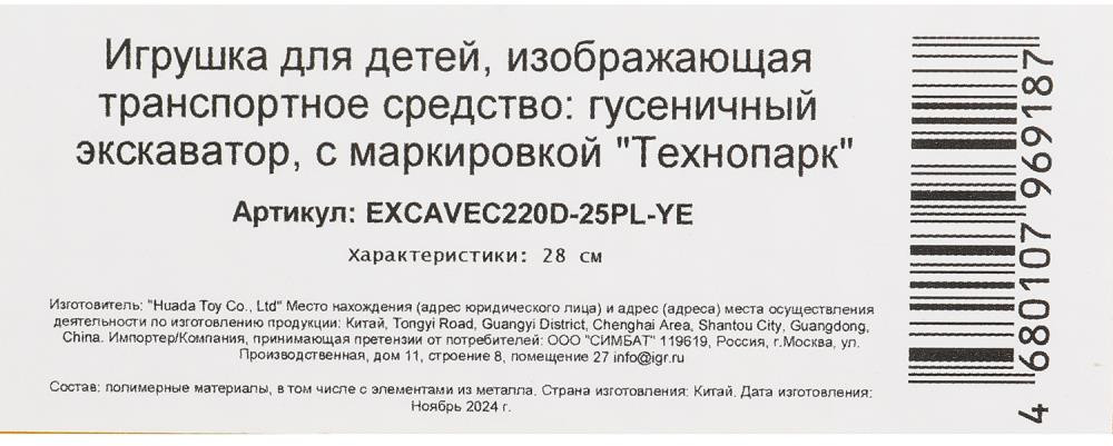 Технопарк Машина инерционная «Volvo. Гусеничный экскаватор»-30% +362