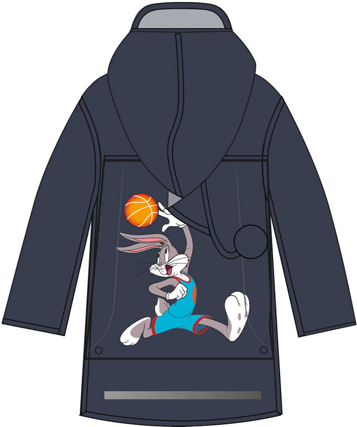 Дождевик детский с козырьком с BUGS BUNNY (Багз Банни) для мальчика. Застежка на кнопки. Материал ЭВА. Без подкладки. Модель имеет спереди два накладных кармана с клапаном. Сзади имеется объемный клапан на кнопках для изменения объема плаща под рюкзак. Есть светоотражающие элементы спереди и сзади. Добавлена петелька под капюшоном с внешней стороны, чтобы остальные вещи на вешалке не намокали. Модель идеально сочетается с резиновым сапогам и зонтом из коллекции. В комплекте идет непромокаемая сумочка