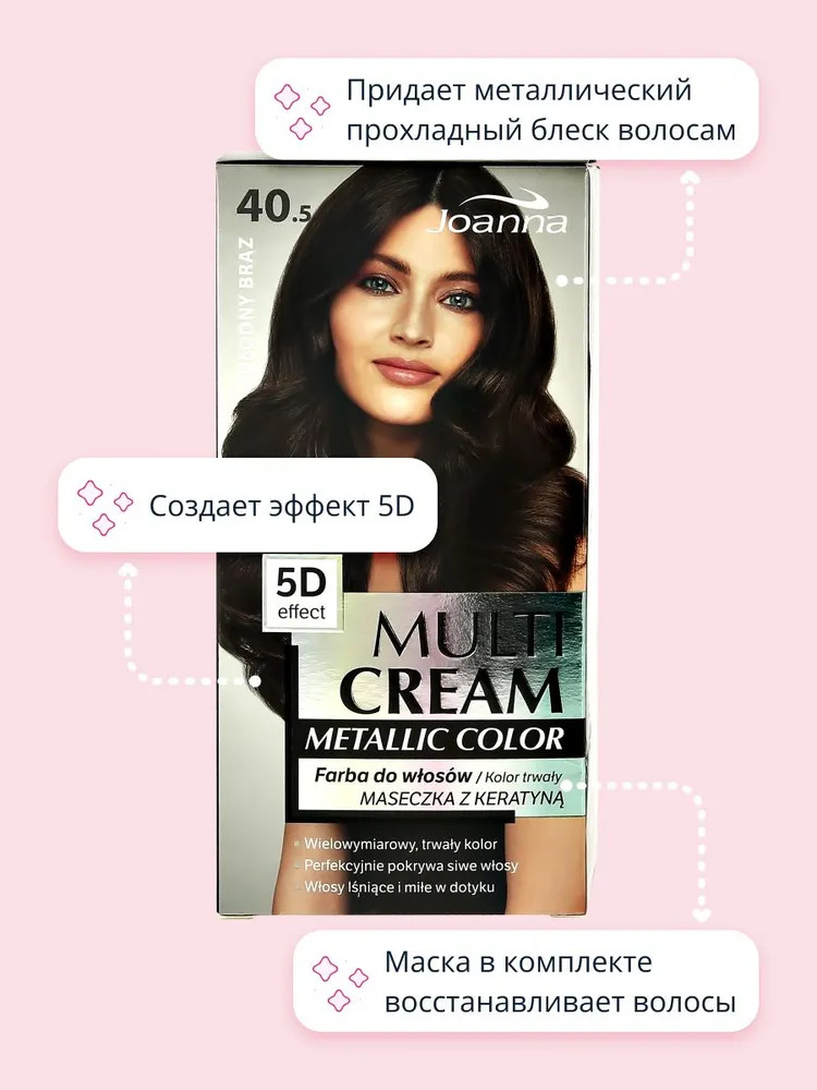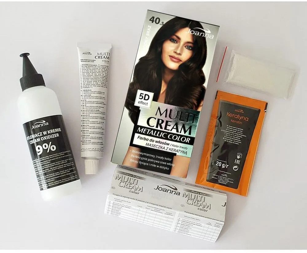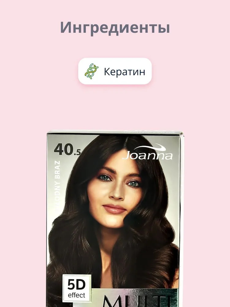 Краска для волос: Aqua, Cetearyl Alcohol, Oleic Acid, Propylene Glycol, Trideceth-2 Carboxamide MEA, Dioleyl Phosphate, Ceteareth-20, Stearyl Alcohol, Oleth-5 Phosphate, Ammonium Hydroxide, Coco-Glucoside, Glyceryl Oleate, Parfum, Disodium EDTA, Amodimethicone, Dimethylpabamidopropyl Laurdimonium Tosylate, Sodium Metabisulfite, Sodium Erythorbate, Tocopherol, Hydrogenated Palm Glycerides Citrate, Citric Acid, Alpha-Isomethyl Ionone, Citronellol, Geraniol, Limonene, Linalool, Toluene-2,5-Diamine Sulfate, Resorcinol, 2-Methylresorcinol, m-Aminophenol, 2,4-Diaminophenoxyethanol HCL.