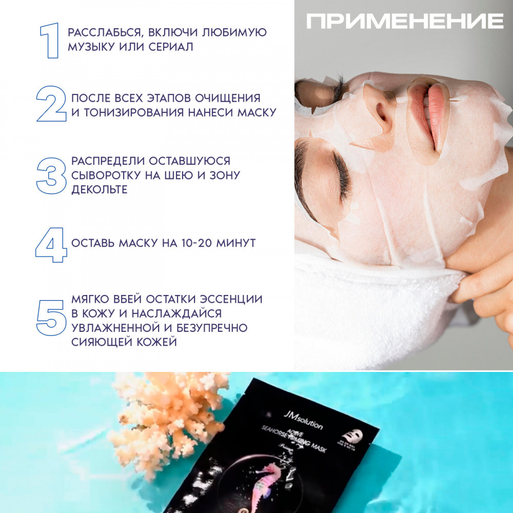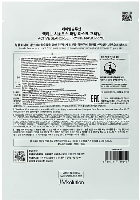 JMsolution Маска для лица тканевая с экстрактом морского конька «Aсtive Seahorse Firming Mask Prime»