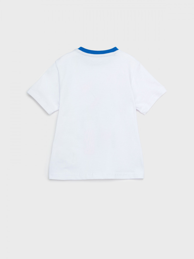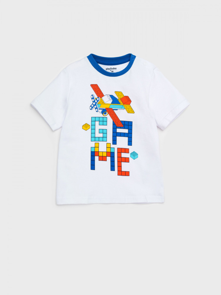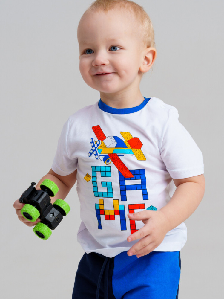 Футболка детская для мальчика. Футболка из качественного и приятного на ощупь трикотажа джерси с высоким содержанием хлопка 95%. Благодаря наличию эластана в составе ткани изделие проще в уходе и держит форму. Модель выполнена из качественного и приятного на ощупь трикотажа.