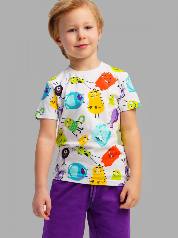 Футболка детская для мальчика. Футболка из качественного и приятного на ощупь трикотажа джерси с высоким содержанием хлопка 95%. Благодаря наличию эластана в составе ткани изделие проще в уходе и держит форму. Модель выполнена из качественного и приятного на ощупь трикотажа.
