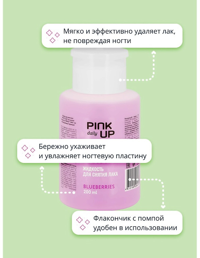 Pink Up Жидкость для снятия лака без ацетона «Черника»