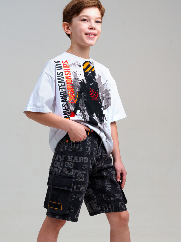 Джинсовые шорты для мальчика подростка. Шорты свободного силуэта. Пояс с внутренней утяжкой. Застежка на молнию и болт. Функциональные карманы.