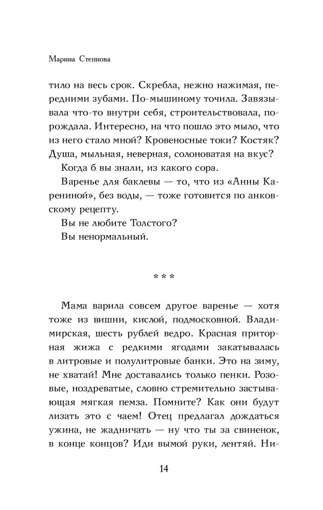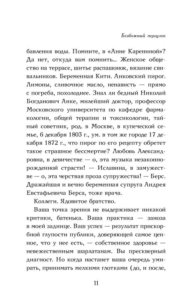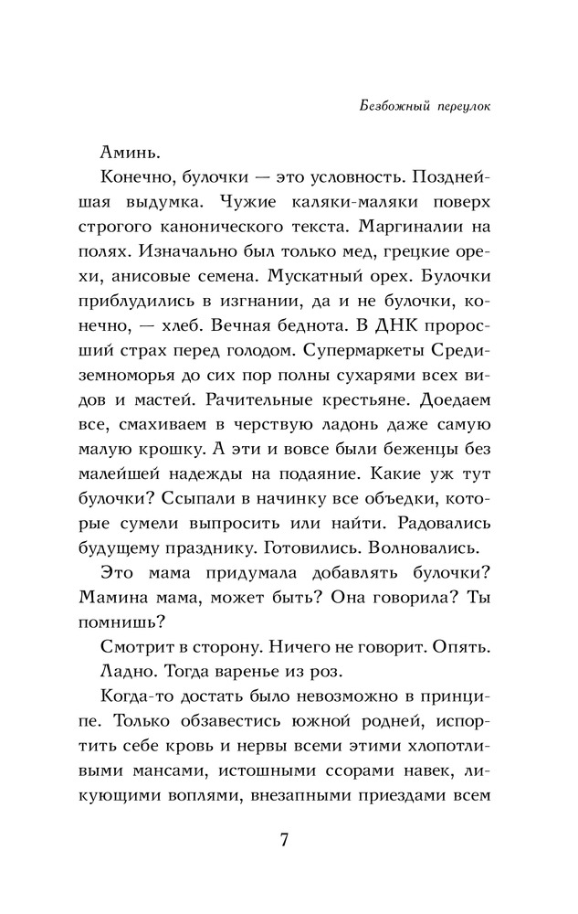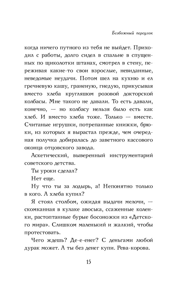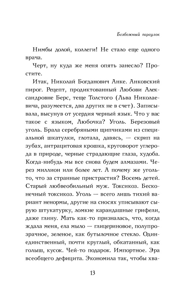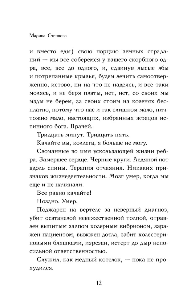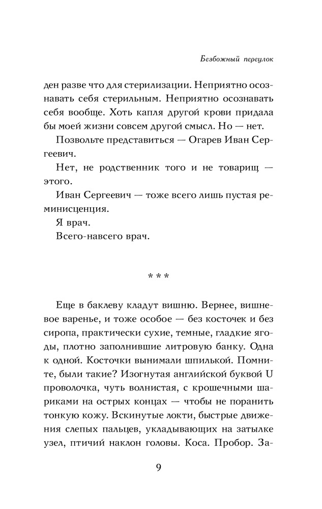 Безбожный переулокВ данный момент этот товар отсутствует в продаже. Возможно, у нас найдется аналогичный или похожий товар здесь. Серия: Чижова рекомендует Марина Степнова – автор громко прозвучавшего романа «Женщины Лазаря» (премия «Большая книга», переведен на многие европейские языки), романа «Хирург», серии отменных рассказов, написанных для журнала «Сноб». Главный герой новой книги «Безбожный переулок» Иван Огарев с детства старался выстроить свою жизнь вопреки – родителям, привычному укладу пусть и столичной, но окраины, заданным обстоятельствам: школа–армия–работа… Трагический случай подталкивает к выбору профессии – он становится врачом. Только снова все как у многих: мединститут–частная клиника–преданная жена… Огарев принимает условия игры взрослого человека, но… жизнь опять преподносит ему неожиданное – любовь к странной девушке, для которой главное – свобода от всего и вся, в том числе и от самой жизни… |