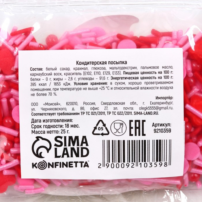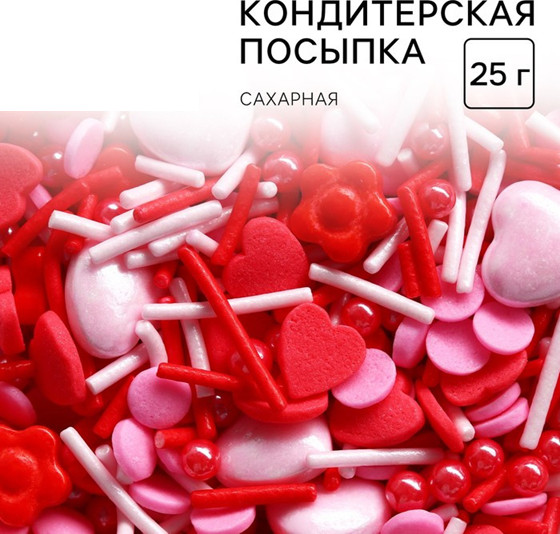 Konfinetta Посыпка кондитерская фигурная «Сердечки», красный, розовый
