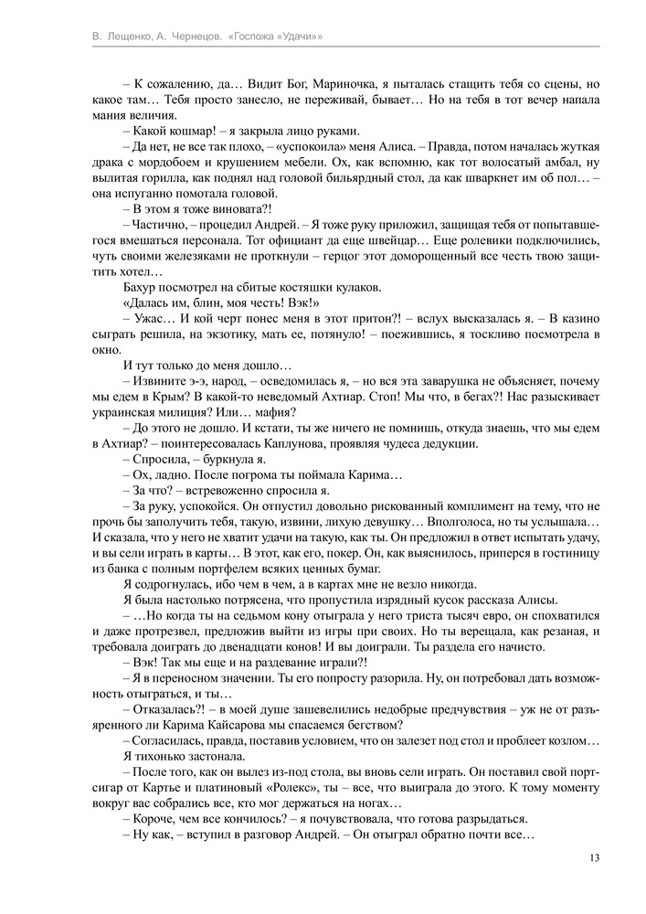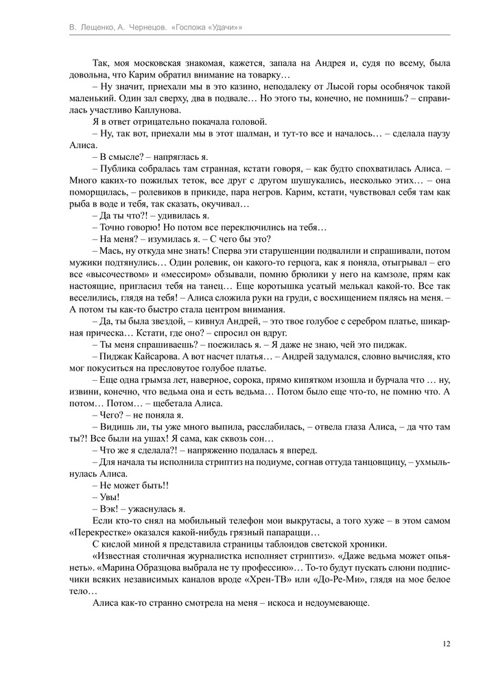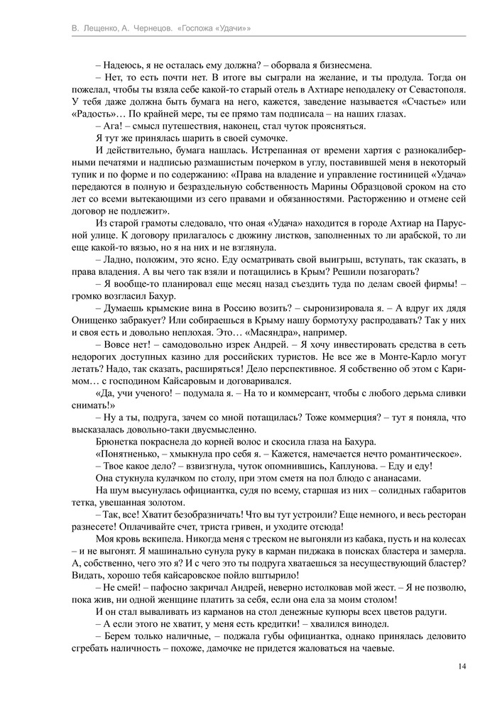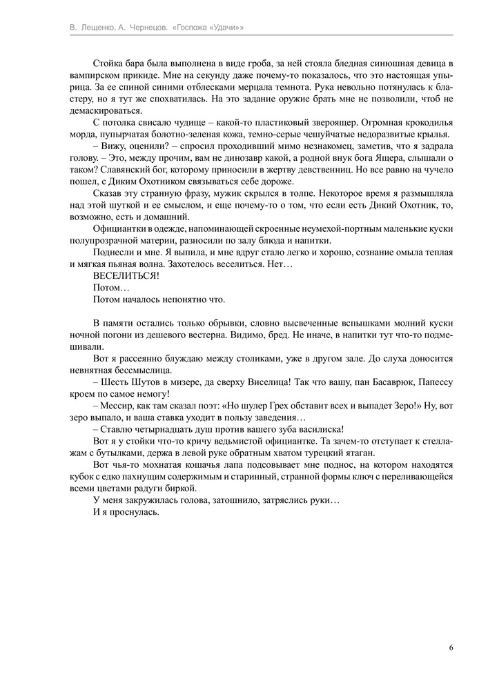 Госпожа "удачи"В данный момент этот товар отсутствует в продаже. Возможно, у нас найдется аналогичный или похожий товар здесь. Серия: Профессиональный оборотень Знакомьтесь, я — Марина Образцова, обычная московская журналистка, которая однажды ухитрилась выиграть в казино… мда, похоже, свою судьбу. Ибо дальше началось такое... Я неведомо как очутилась в Крыму, причем каком-то странном — не в украинском, не в российском и даже не в турецком. Там случайно стала хозяйкой гостиницы «Удача», в комплекте с которой шло жутко вредное и сварливое привидение. Случайно приютила местного Темного властелина, которого хотят разодрать на клочки полоумные ведьмы. Случайно выяснила, что я сама в некотором роде ведьма, да не простая, а горная. А еще я вижу сны — иногда страшные, всегда жутко интересные и уж точно не мои. Но чьи же?.. |