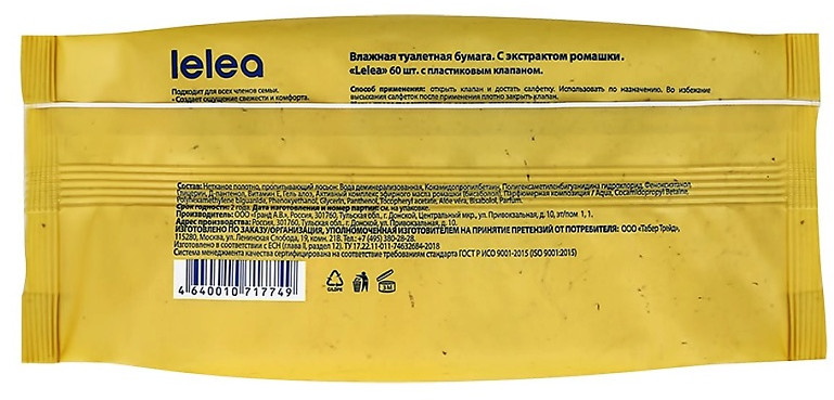 Lelea Бумага туалетная влажная с экстрактом ромашки