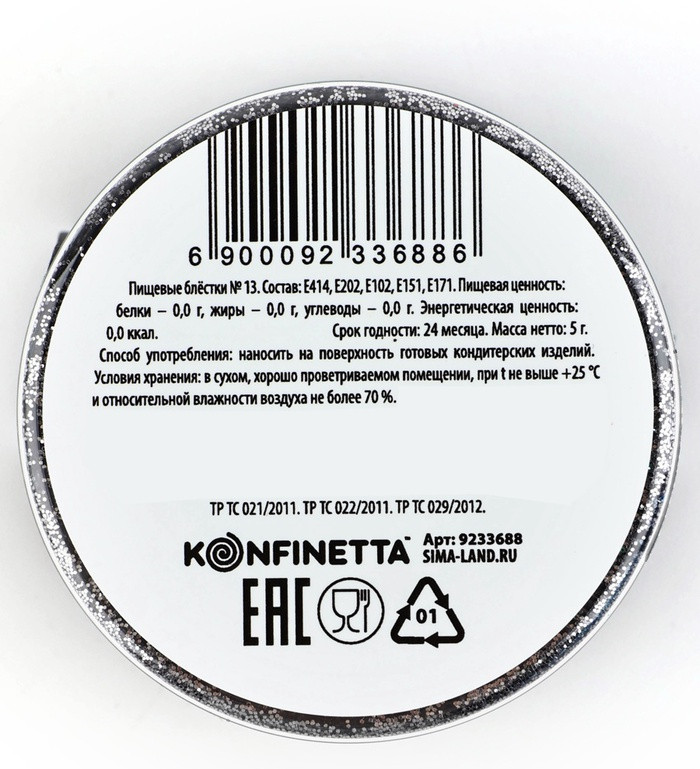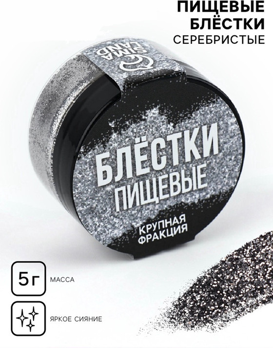 Konfinetta Блестки пищевые крупной фракции для капкейков, тортов и напитков, серебристый