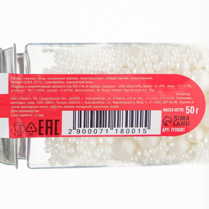 Глюкоза, сахар, кукурузный крахмал, мальтодекстрин, стеарат магния, искусственный пигмент (E555, E171), гуммиарабик, карнаубский воск.