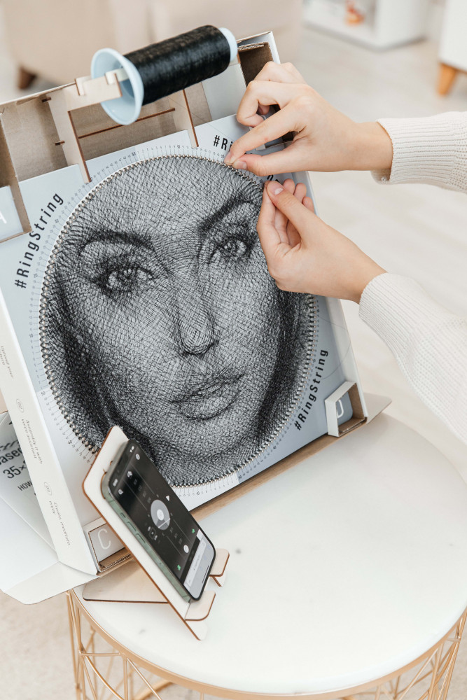 RingString Mini — это первая в мире картина нитями в технике string-art, которую ты собираешь сам из любой фотографии. С помощью подробной голосовой инструкции и расслабляющей фоновой музыки, ты не только создашь свой шедевр, но получишь удовольствие от процесса. Компактный размер гармонично впишется в любой интерьер и позволит всего за несколько часов создать картину. Фотография из нитей рингстринг — это интересное хобби для себя и близких, уникальный подарок, который точно произведет впечатление.