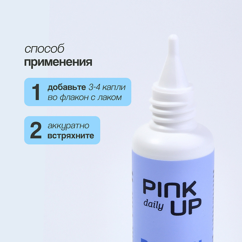 Разбавитель лака для ногтей Pink Up Daily подходит для разбавления всех видов лака и гель-лака. Средство восстанавливает их структуру, позволяет продлить срок службы лака и гель-лака. Не содержит масел, ацетона и воды. Капельный дозатор делает процедуру легкой и удобной.