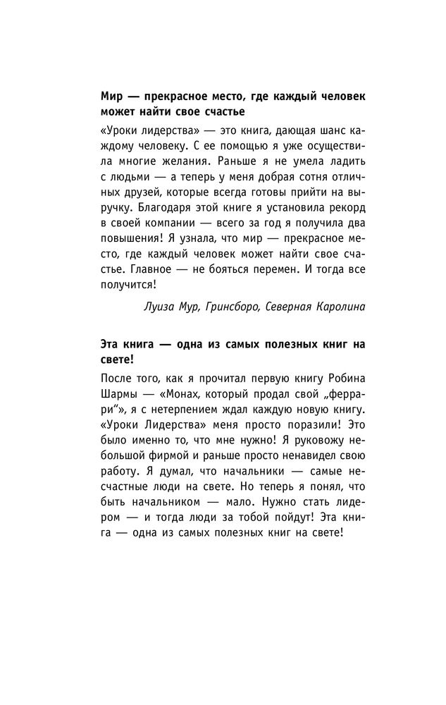 Отличная книга, очень полезная для ведения бизнеса. Мудрость лидерства- основная тема книги. Монах дает советы другу- крупному бизнесмену, бизнес которого пошатнулся. Как всегда- великолепная подача информации с примерами для лучшего понимания.
