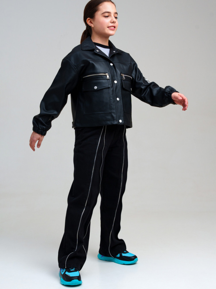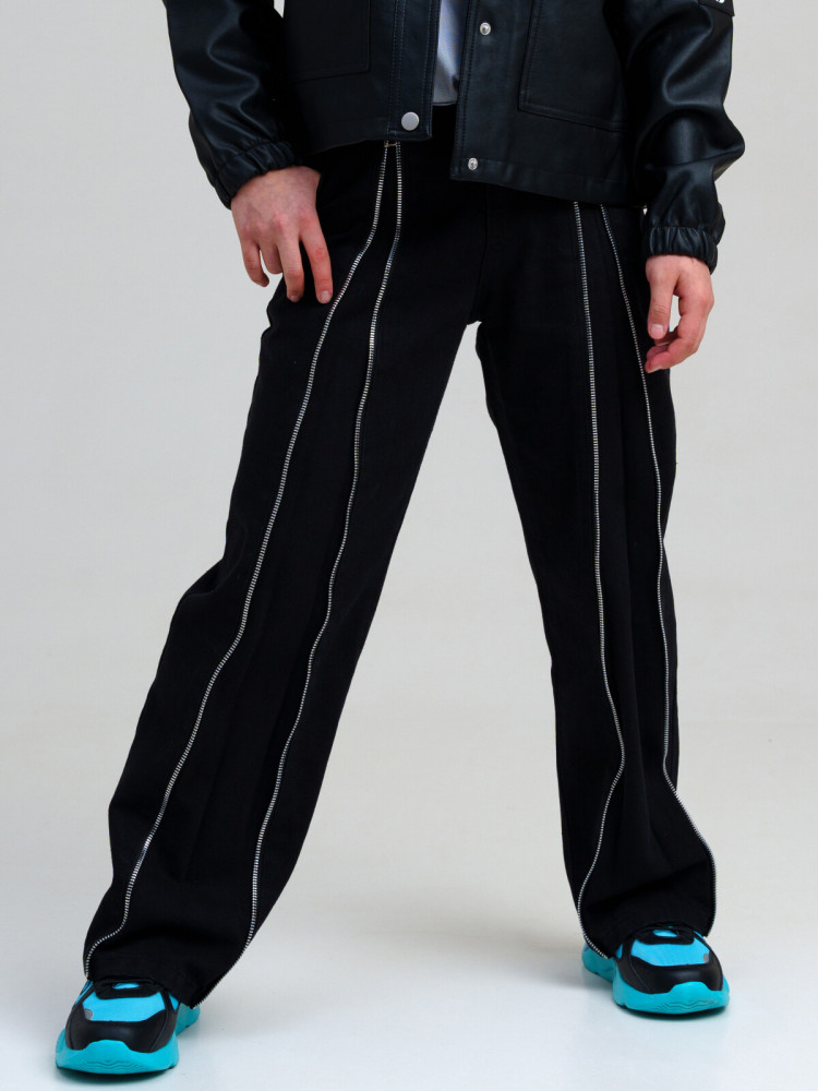 Джинсы для девочки подростка. WIDE LEG - свободная посадка и расклёшенные от бедра штанины. Высокая посадка. Внутренняя утяжка. Застежка на молнию и болт. Металлические молнии по всей длине брючин позволяют делать джинсы шире изменять силуэт.