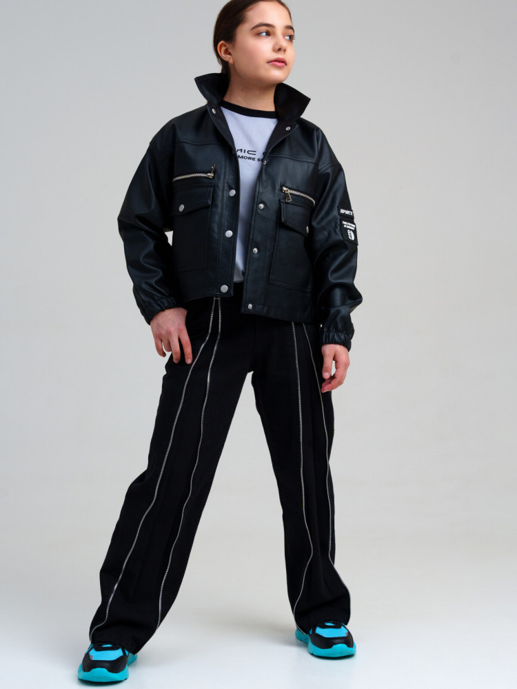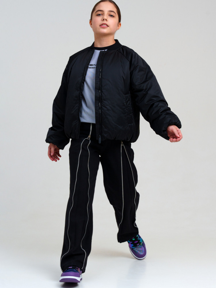 Джинсы для девочки подростка. WIDE LEG - свободная посадка и расклёшенные от бедра штанины. Высокая посадка. Внутренняя утяжка. Застежка на молнию и болт. Металлические молнии по всей длине брючин позволяют делать джинсы шире изменять силуэт.