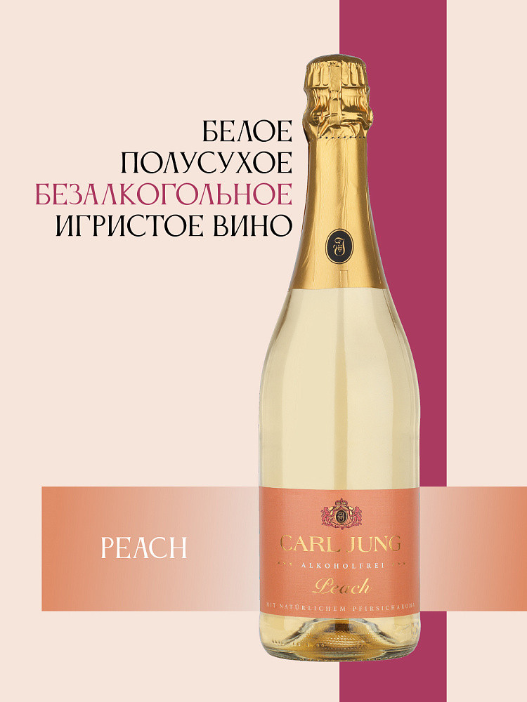 Carl Jung Шампанское безалкогольное белое полусухое «Peach»В данный момент этот товар отсутствует в продаже. Возможно, у нас найдется аналогичный или похожий товар здесь. Белое полусухое безалкогольное игристое вино от бренда Carl Jung «Peach». Как только вы ощущаете фруктовый аромат персиков, то понимаете, что наконец-то снова наступает лето. Mousseux Peach олицетворяет именно эту радость теплого сезона. Для приготовления используются исключительно натуральные персиковые ароматизаторы, которые делают наше вино настоящим летним символом. Пряный и острый вкус, с легкой сладостью и приятном покалыванием на нёбе. |