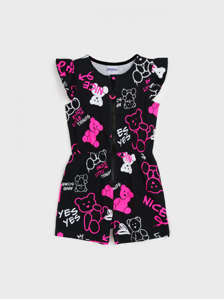 Комбинезон детский для девочки. Комбинезон из качественного и приятного на ощупь трикотажа джерси. Высокое содержание хлопка 95%. Благодаря наличию эластана в составе ткани изделие проще в уходе и держит форму. Пояс на резинке. Застежка на молнию.