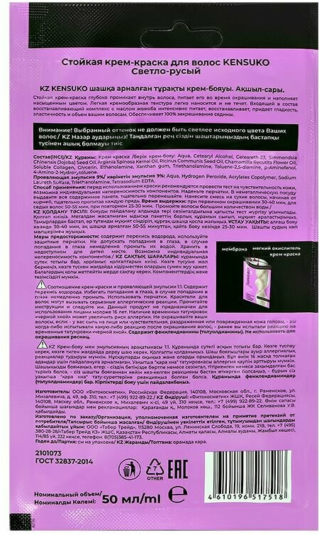 Kensuko Крем-краска для волос, оттенок Светло-русый