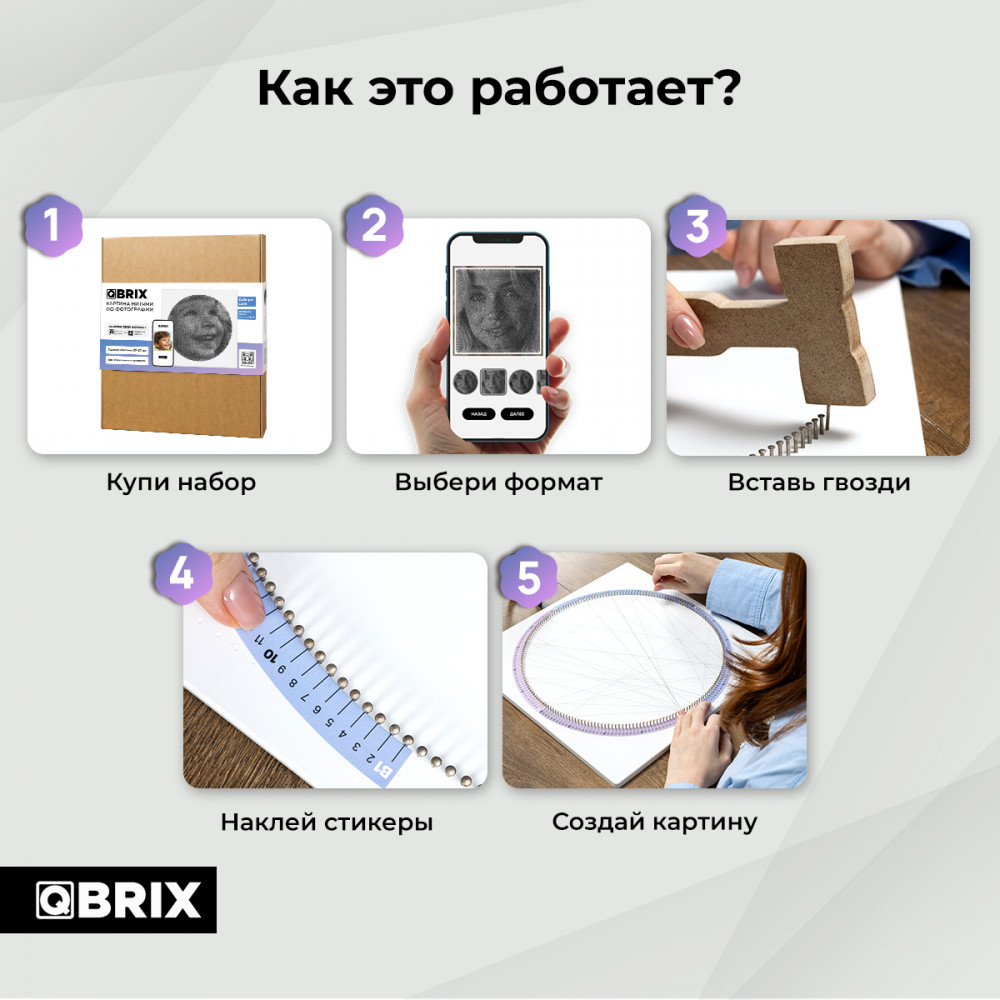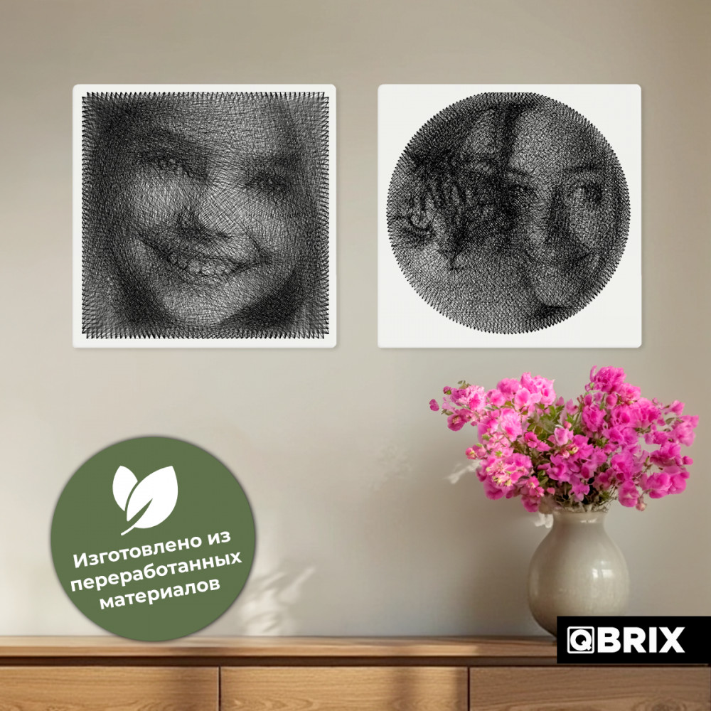 💳 Оплатить за товар можно при получении 🇰🇿 Есть бесплатная доставка по Казахстану 🎁 Копите бонусы с каждой покупки Картина нитями от QBRIX — это набор для создания портрета из любой фотографии в стиле стринг-арт, который позволяет выбрать форму картины: круг или квадрат, уже после покупки! |