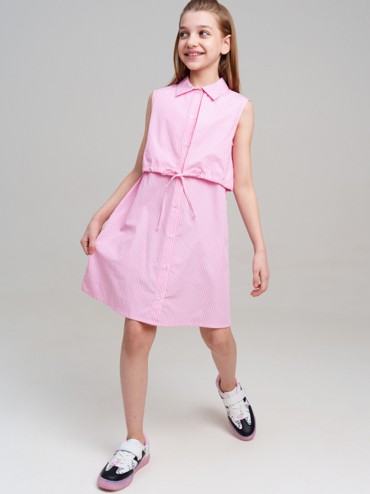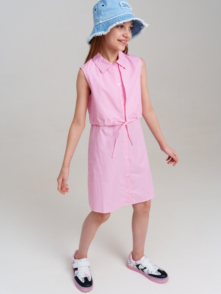 Платье для девочки подростка. 100% хлопок. Застежка на пуговицы. Утяжка по поясу. Модель выполнена из качественного и плотного текстиля.