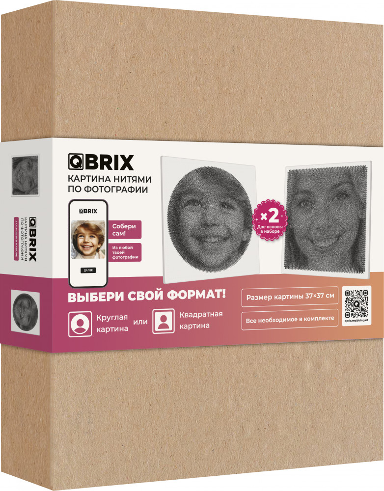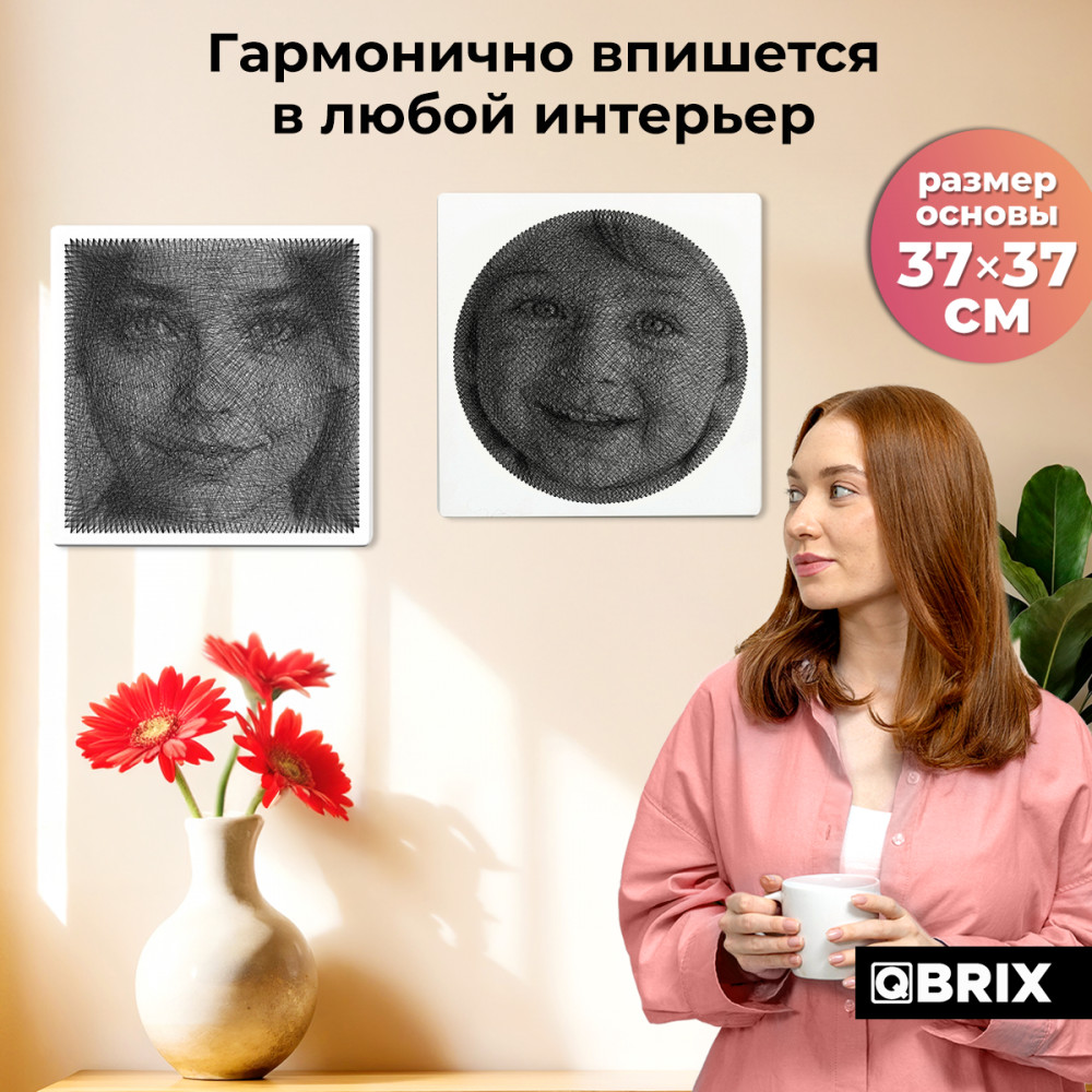Картина нитями от QBRIX две основы — это набор для создания портрета из любой фотографии в стиле стринг-арт, который позволяет выбрать форму картины: круг или квадрат, или круг и квадрат, уже после покупки! Плетите неповторимые шедевры по любимым фото, создавая картину своими руками с нуля. В наборе представлены две основы для создания двух картин.