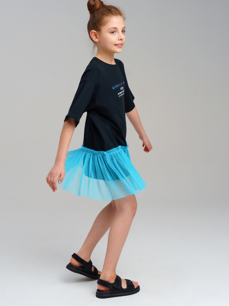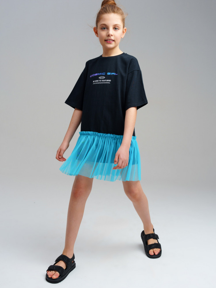Платье для девочки подростка. Платье оверсайз из качественного и приятного на ощупь трикотажа джерси с высоким содержанием хлопка 95%. Благодаря наличию эластана в составе ткани изделие проще в уходе и держит форму. Декор из сетки Модель выполнена из качественного и приятного на ощупь трикотажа.