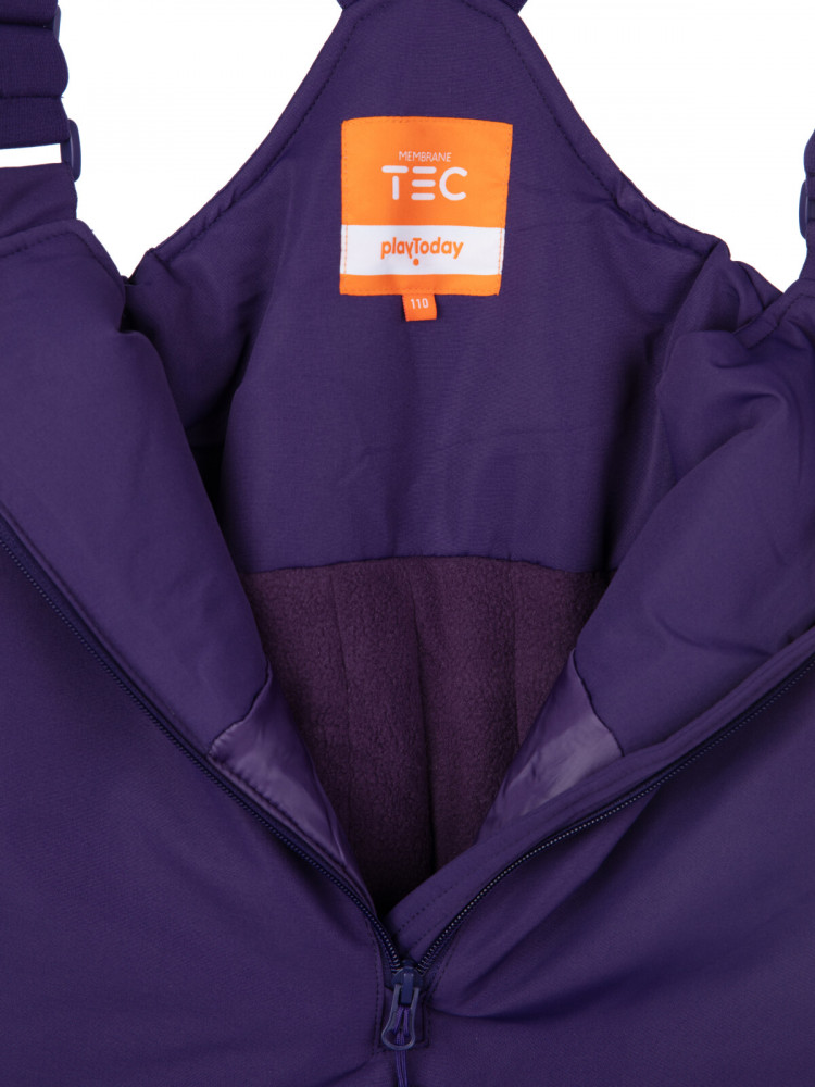 Мембранный материал делает этот яркий и модный полукомбинезон непромокаемым: мембрана не пропускает влагу снаружи, но выводит её изнутри, что крайне важно во время подвижных игр и занятий спортом.