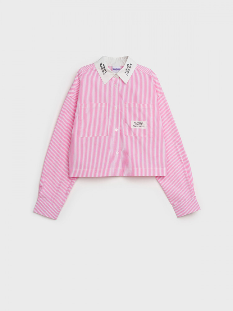 Рубашка укороченная для девочки подростка. 100% хлопок. Застежка на кнопки. Модель выполнена из качественного и плотного текстиля.