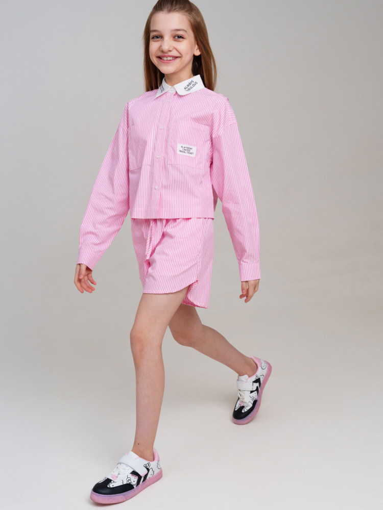 Рубашка укороченная для девочки подростка. 100% хлопок. Застежка на кнопки. Модель выполнена из качественного и плотного текстиля.