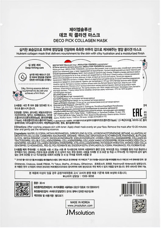 JMsolution Маска тканевая для лица «Deco pick collagen mask»
