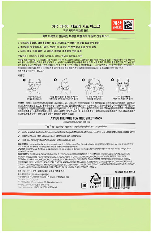 A'pieu Маска для лица успокаивающая «Sheet Mask»