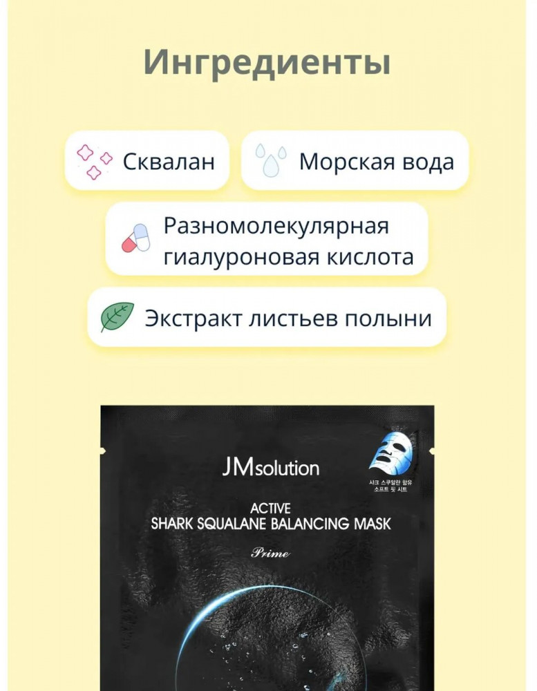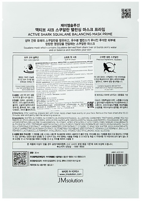 JMsolution Маска для лица тканевая со скваланом «Aсtive Shark Squalane Balanсing Mask»