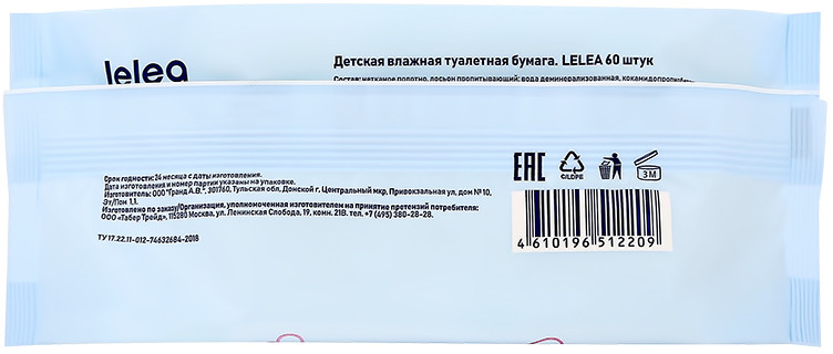 Lelea Бумага туалетная влажная детская с D-пантенолом