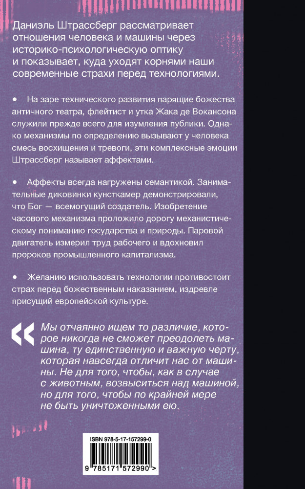 💳 Оплатить за товар можно при получении 🇰🇿 Есть бесплатная доставка по Казахстану от 1 дня 🎁 Копите бонусы с каждой покупки Серия: Слово современной философии Даниэль Штрассберг рассматривает отношения человека и машины через историко-психологическую оптику и показывает, куда уходят корнями наши современные страхи перед технологиями. |