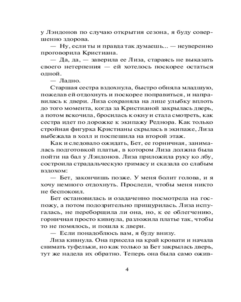 💳 Оплатить за товар можно при получении 🇰🇿 Есть бесплатная доставка по Казахстану 🎁 Копите бонусы с каждой покупки Серия: Очарование Роберт Лэнгли — убежденный холостяк и планирует жениться лишь под старость исключительно ради продолжения рода, а все потому, что над мужчинами его семьи тяготеет проклятие: всем им изменяли жены. Его размеренную жизнь нарушает одна из подруг детства Лиза Мэдисон, которую он принимал за младшую сестру. Девушка попадает в серьезные неприятности — за ней охотится некий таинственный поклонник, желающий ее похитить. Роберт чудом спас ее из западни и теперь принимает решение держаться к ней поближе, чтобы ее охранять, пока преступник не будет найден. И он не знал, что все это время у Лизы был собственный план — любыми средствами заполучить себе мужа, и именно его, Роберта Лэнгли. |