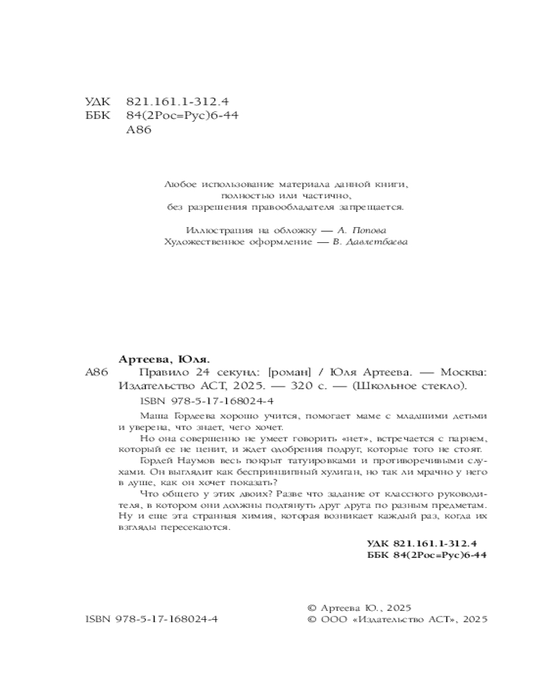 💳 Оплатить за товар можно при получении 🇰🇿 Есть бесплатная доставка по Казахстану от 1 дня 🎁 Копите бонусы с каждой покупки Серия: Школьное стекло Маша Гордеева хорошо учится, помогает маме с младшими детьми и уверена, что знает, чего хочет. Но она совершенно не умеет говорить «нет», встречается с парнем, который ее не ценит, и ждет одобрения подруг, которые того не стоят. Гордей Наумов весь покрыт татуировками и противоречивыми слухами. Он выглядит как беспринципный хулиган, но так ли мрачно у него в душе, как он хочет показать? Что общего у этих двоих? Разве что задание от классного руководителя, в котором они должны подтянуть друг друга по разным предметам. Ну и еще эта странная химия, которая возникает каждый раз, когда их взгляды пересекаются. |